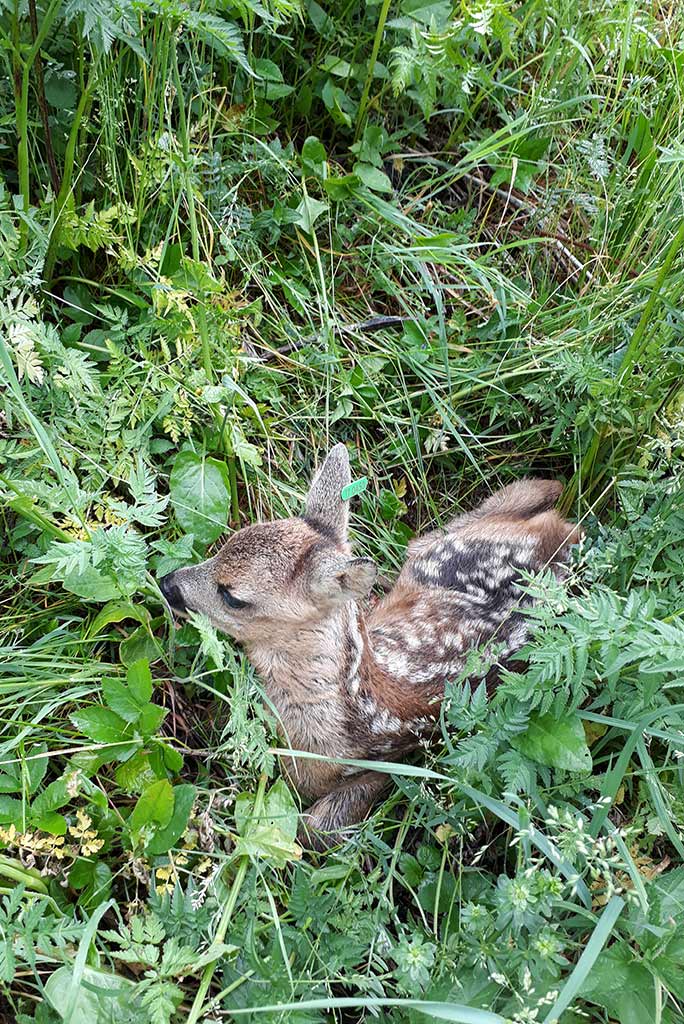 In den Monaten Mai/Juni werden mehrheitlich die Rehkitze gesetzt. Ihr gepunktetes Fell, kombiniert mit ihrem natürlichen Verhalten sich ins hohe Gras zu ducken, macht die Kitze nahezu unsichtbar für Fressfeinde. Diese Strategie des Rehwildes ist aber leider nicht für den Landwirt mit seinem Mähwerk ausgelegt. Da die erste Mahd in derselben Zeit ist wie die Setzzeit, fallen laut Schätzungen jährlich bis zu 25.000 Rehkitze in Österreich den Mähwerken zum Opfer.